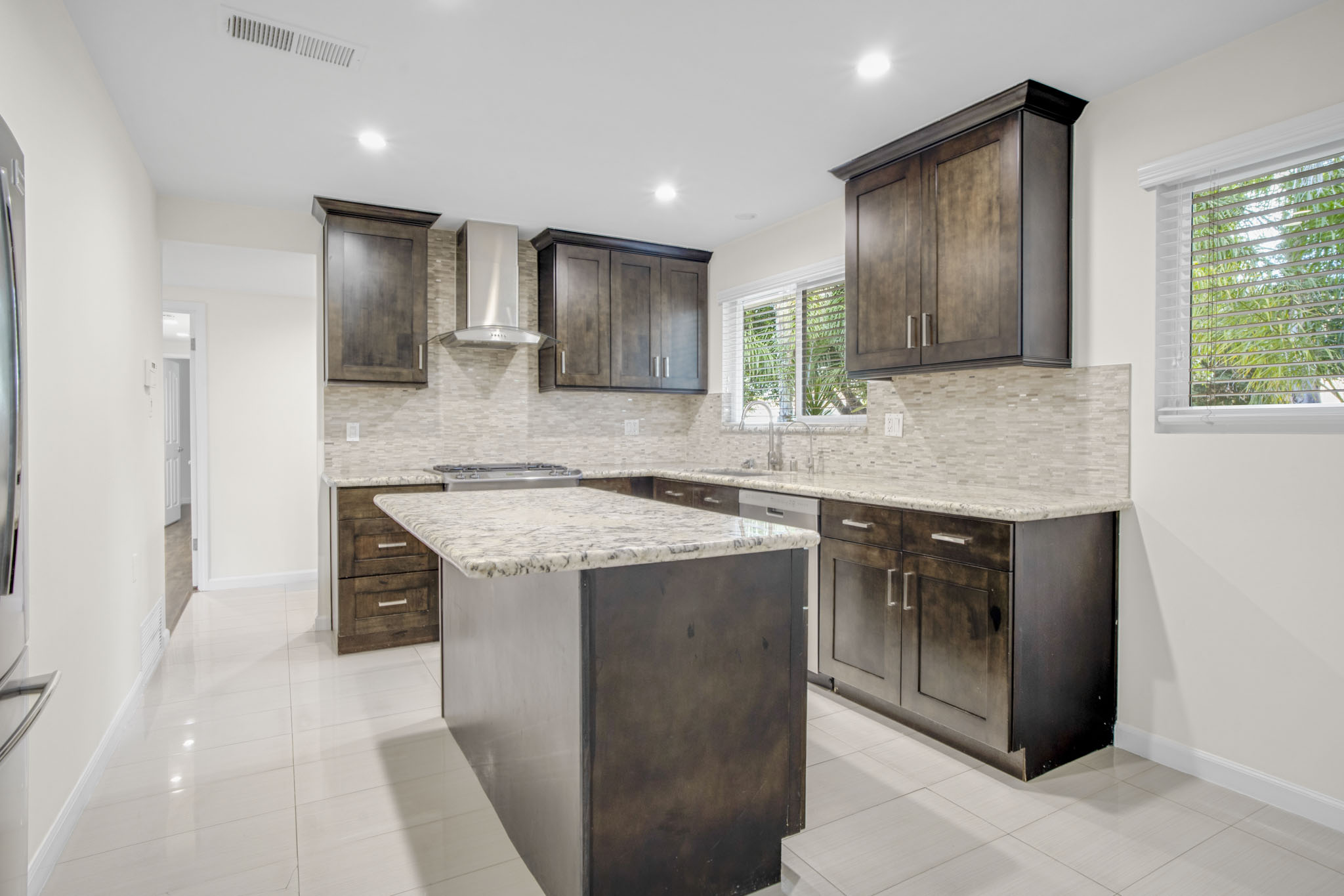 Great curb appeal on this 3 bedrooms and 2 bath charmer with freshly painted interior! Updated kitchen with granite counter tops, stainless steel appliances, including the fridge and washer/dryer. Large living room with custom fireplace. Newer laminate flooring, central heat/air, dual pane windows, and much more. True primary bedroom with on suite primary bath. Large rear yard perfect for entertaining.
